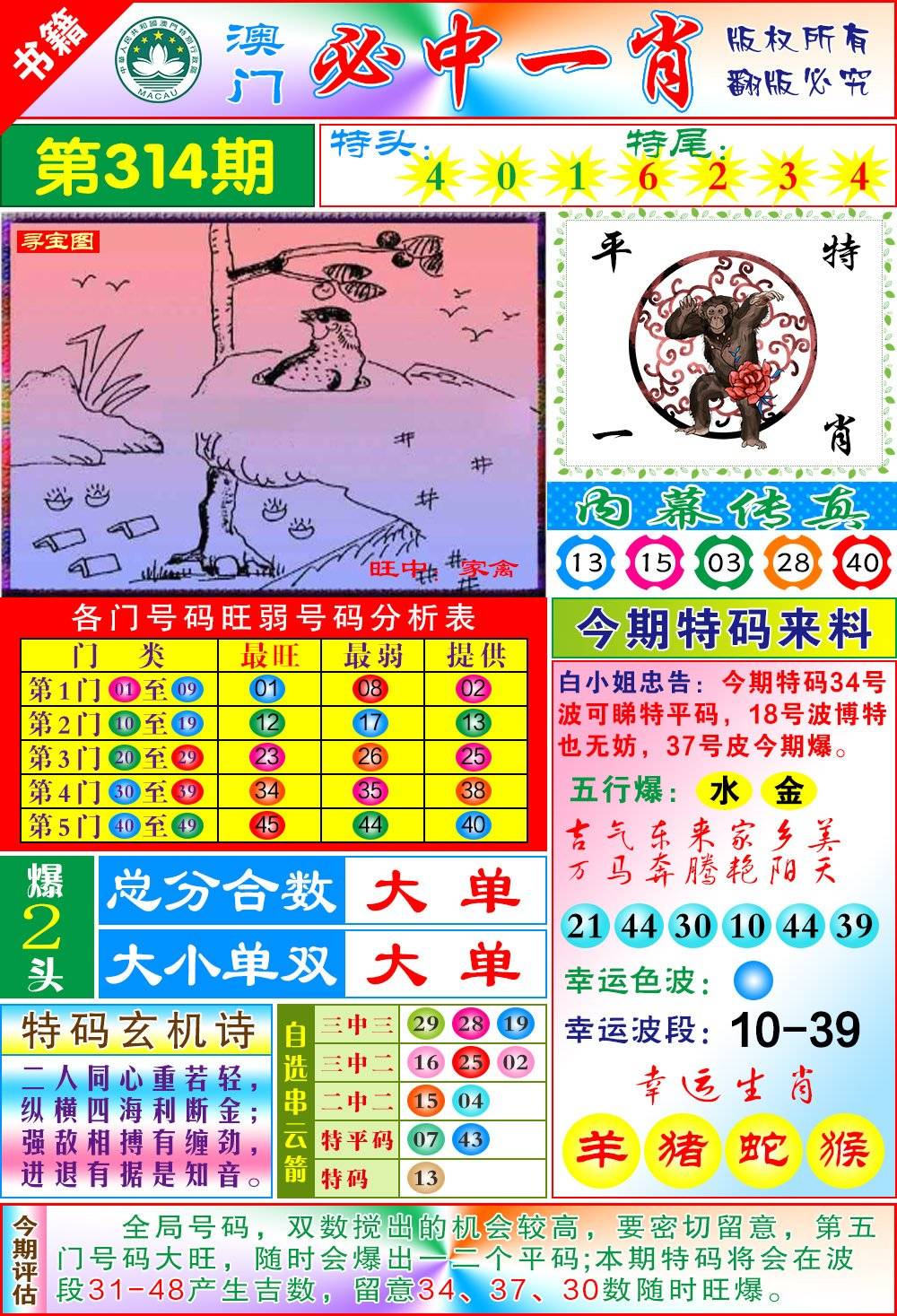 | 314期:平特连肖【龙猴马蛇牛羊】开0个 准 |